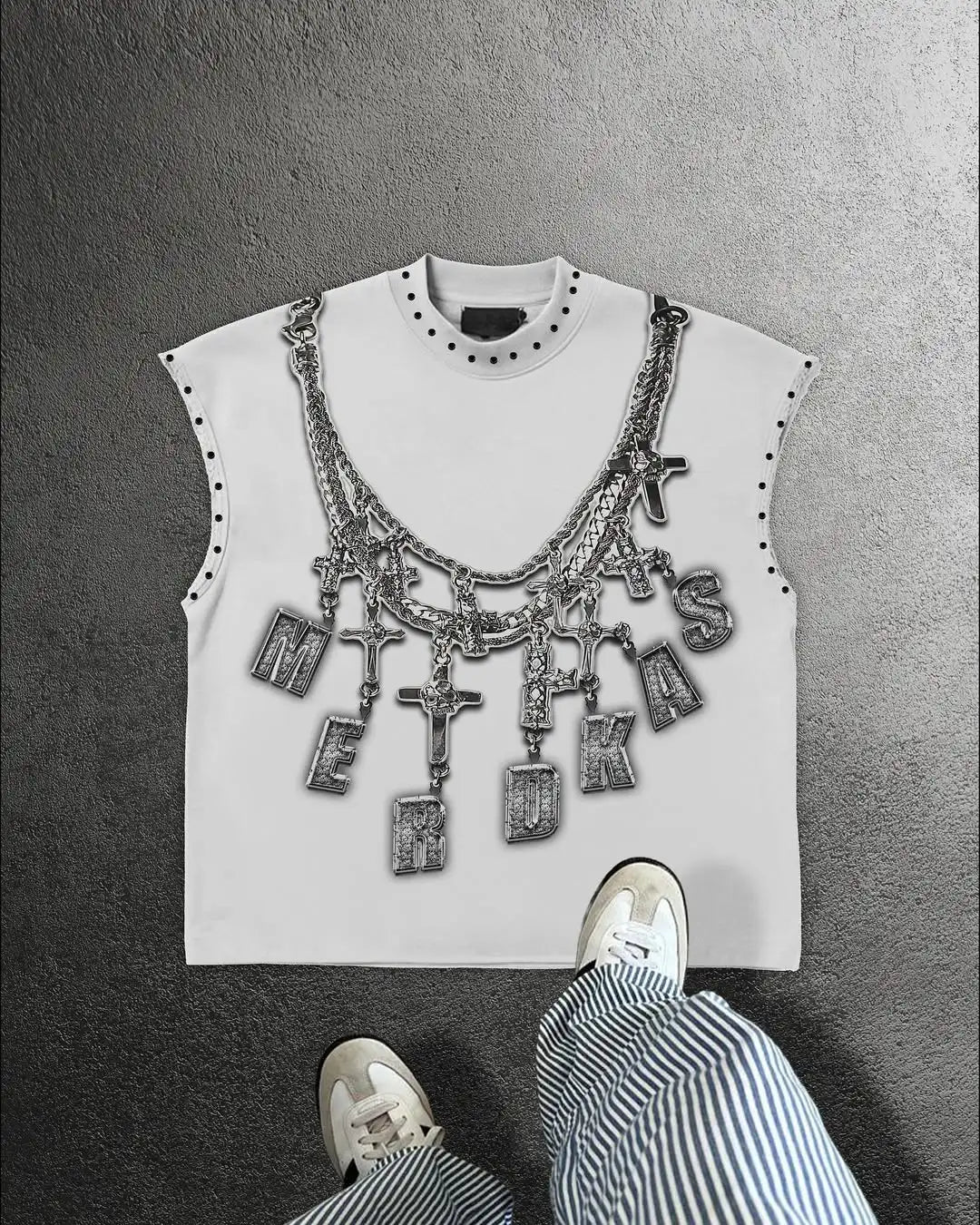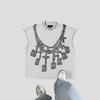 Maglietta Punk Bianca con Grafica a Catene Metallica Vedi opzioni