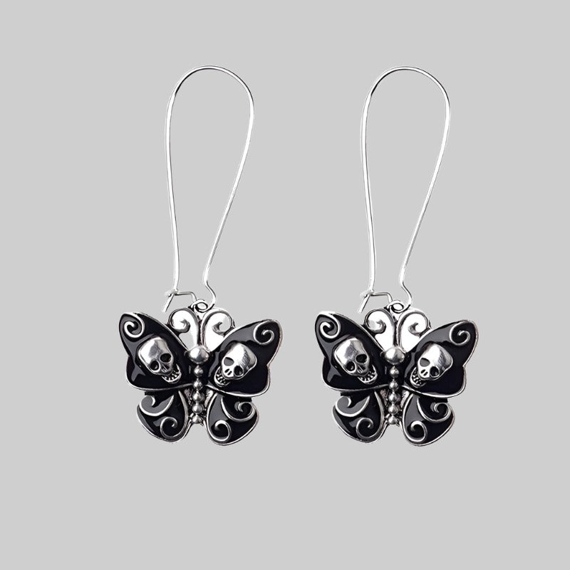 - Decorazione: teschi incisi sulle ali di una farfalla nera, ornamento metallico
