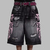 Pantaloncini Jeans Punk Lunghi con Motivi Rosa e Cintura