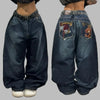 Pantaloni Baggy in Stile Metal con Cintura Borchiata e Ricamo