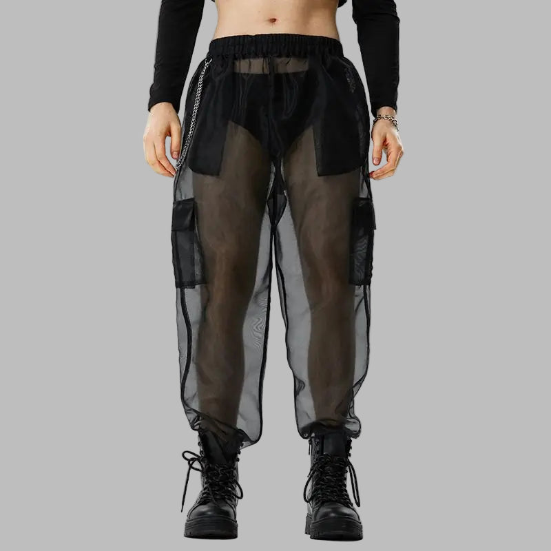 Pantaloni Cargo Steampunk Grigi con Rete Urbani