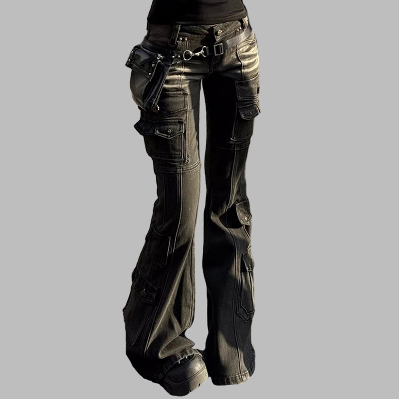 Pantaloni gotici neri cargo a zampa con tasche Vedi opzioni