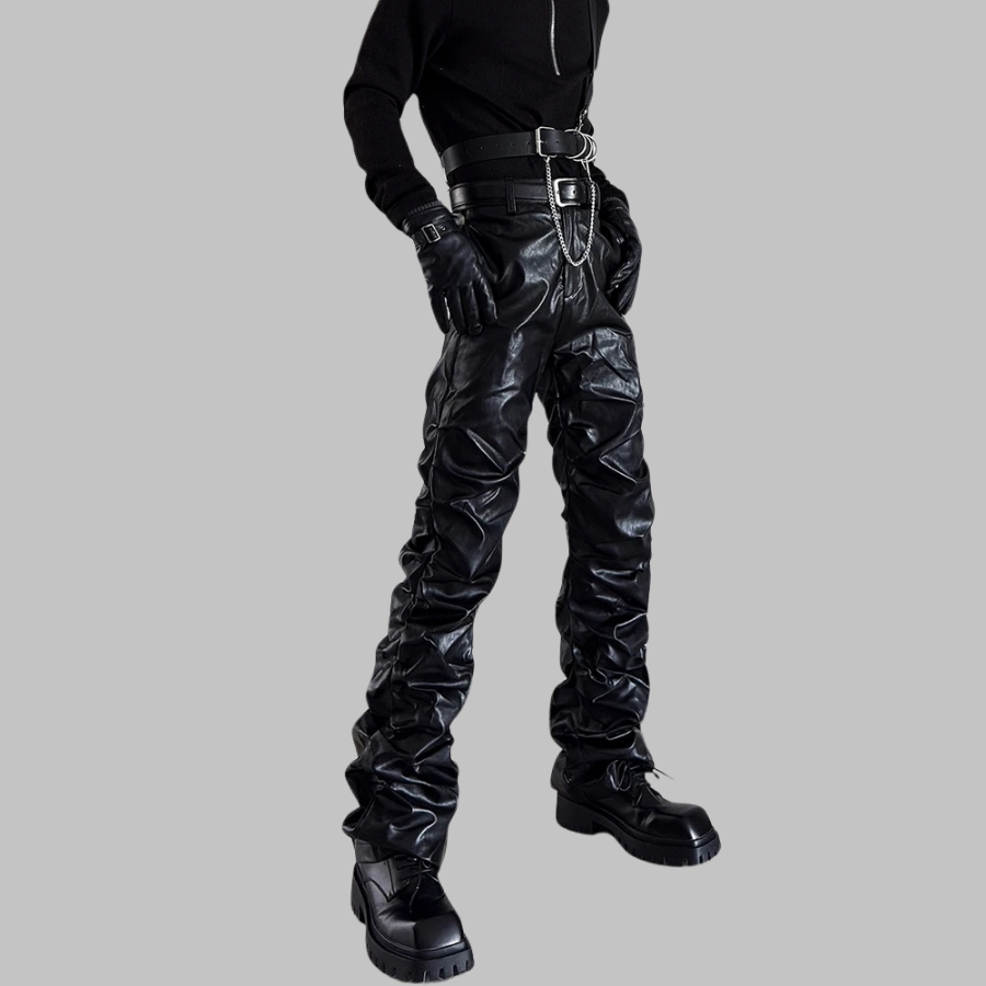 Pantaloni Gotici Neri in Pelle Ecologica con Catene e Cintura