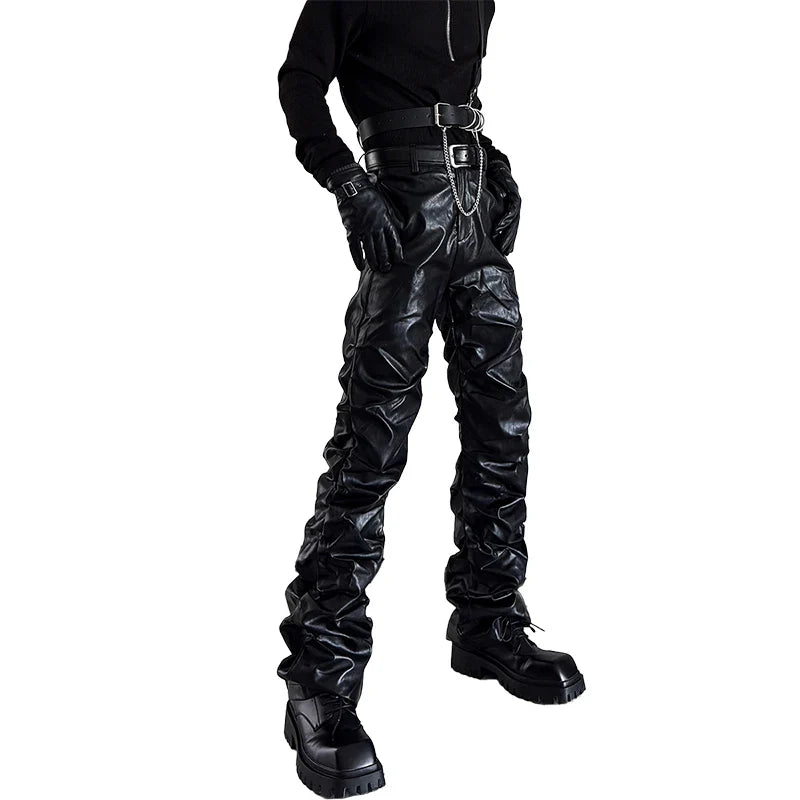 Pantaloni Gotici Neri in Pelle Sintetica con Catene e Cintura