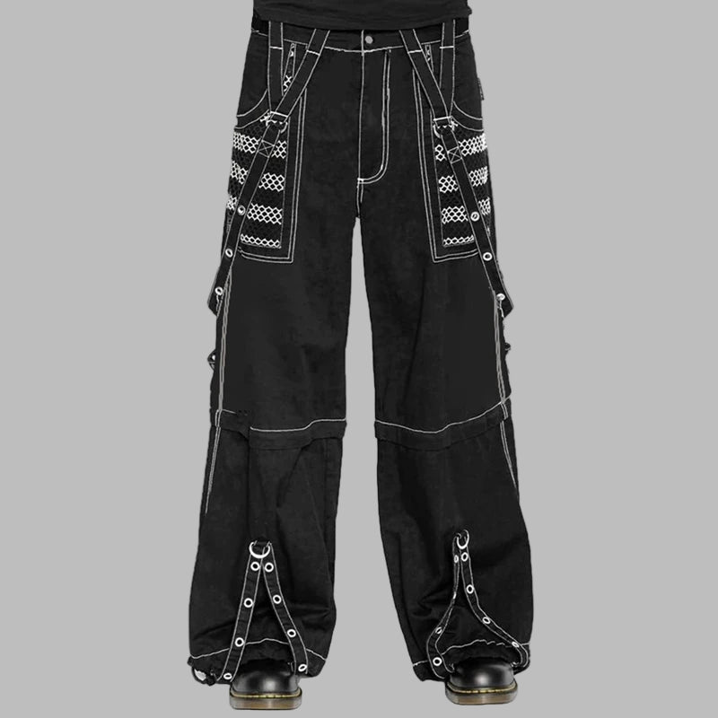 Pantaloni Gotici Punk Rock Neri con Catene e Tasche in Rete Vedi opzioni