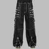Pantaloni Gotici Punk Rock con Catene e Tasche a Rete Neri L