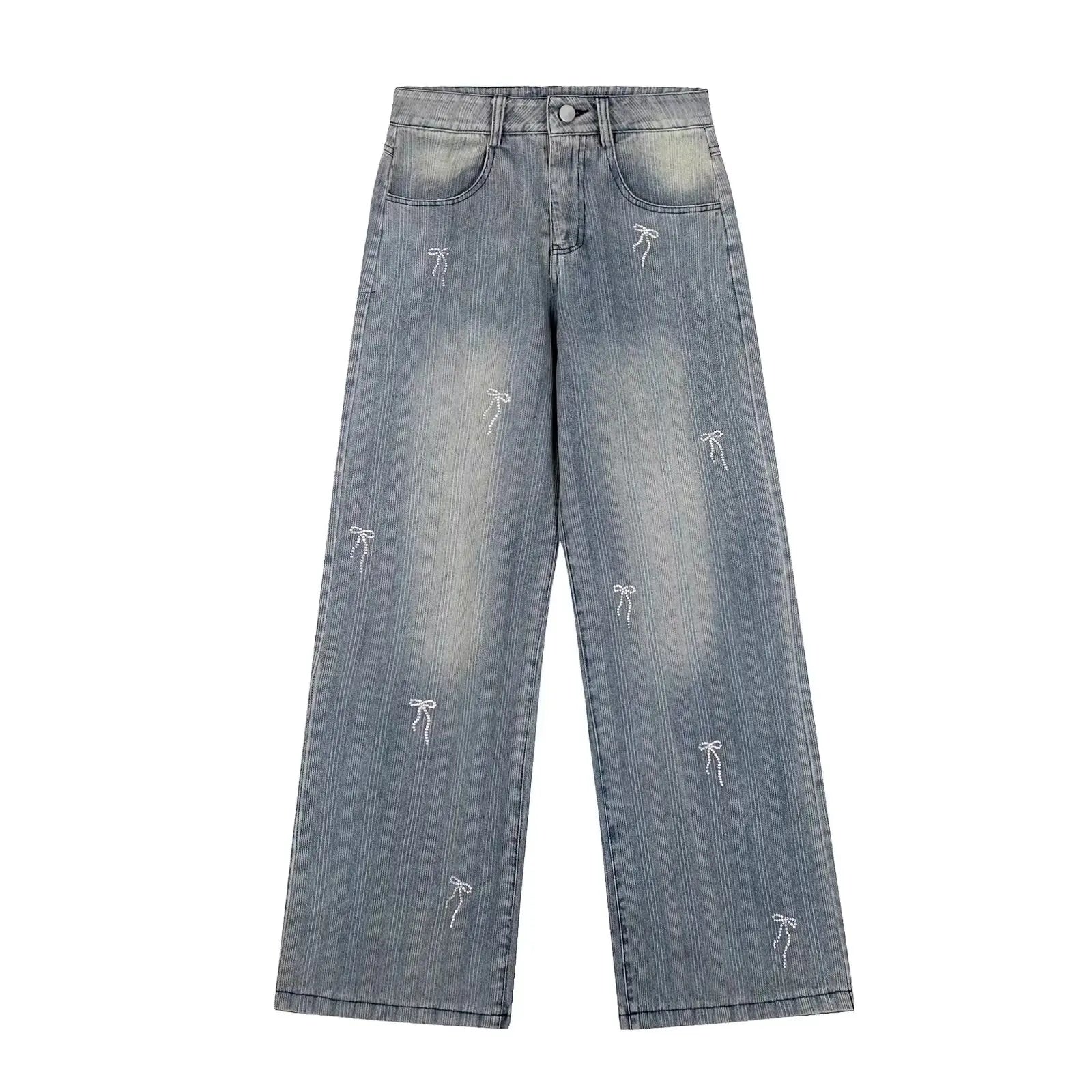 Pantaloni Grunge Jeans Larghi Vintage con Nastri