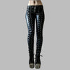 Pantaloni in Pelle Nera Gotici Punk con Lacci Metal Rock