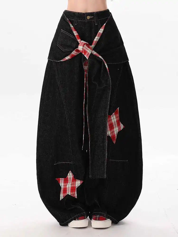 Pantaloni Larghi Punk Neri Lunghi con Stelle Donna Oversize