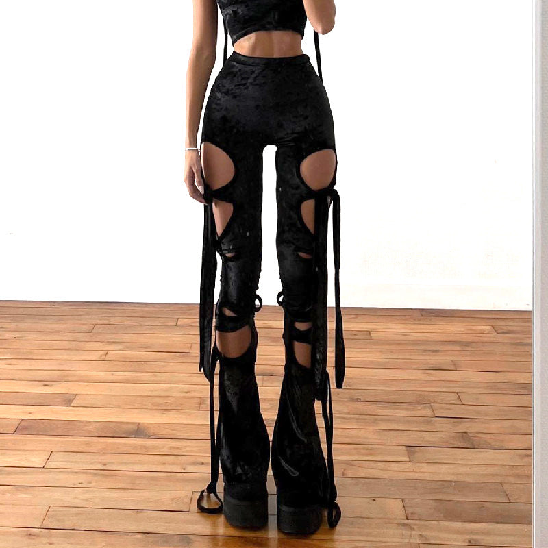 • Dettagli Unici: Dettagli come "Hollow Out," vintage e fasce aggiungono una dimensione artistica a questi pantaloni gotici. Questi elementi creano un'estetica visivamente accattivante, sottolineando il carattere oscuro dei pantaloni.