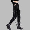 Pantaloni Punk Neri con Anelli in Metallo e Cinghie Tattiche