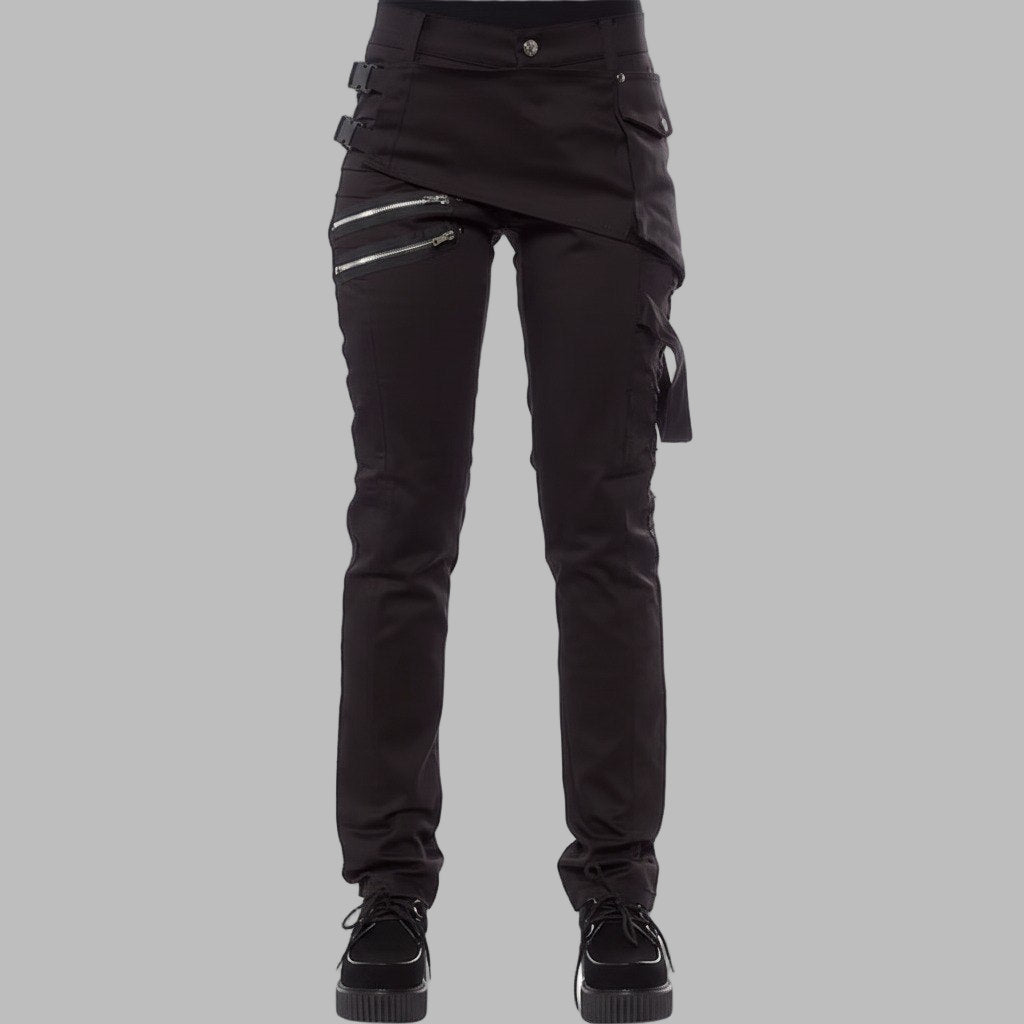 Pantaloni Punk Rock Neri con Cerniere Steampunk