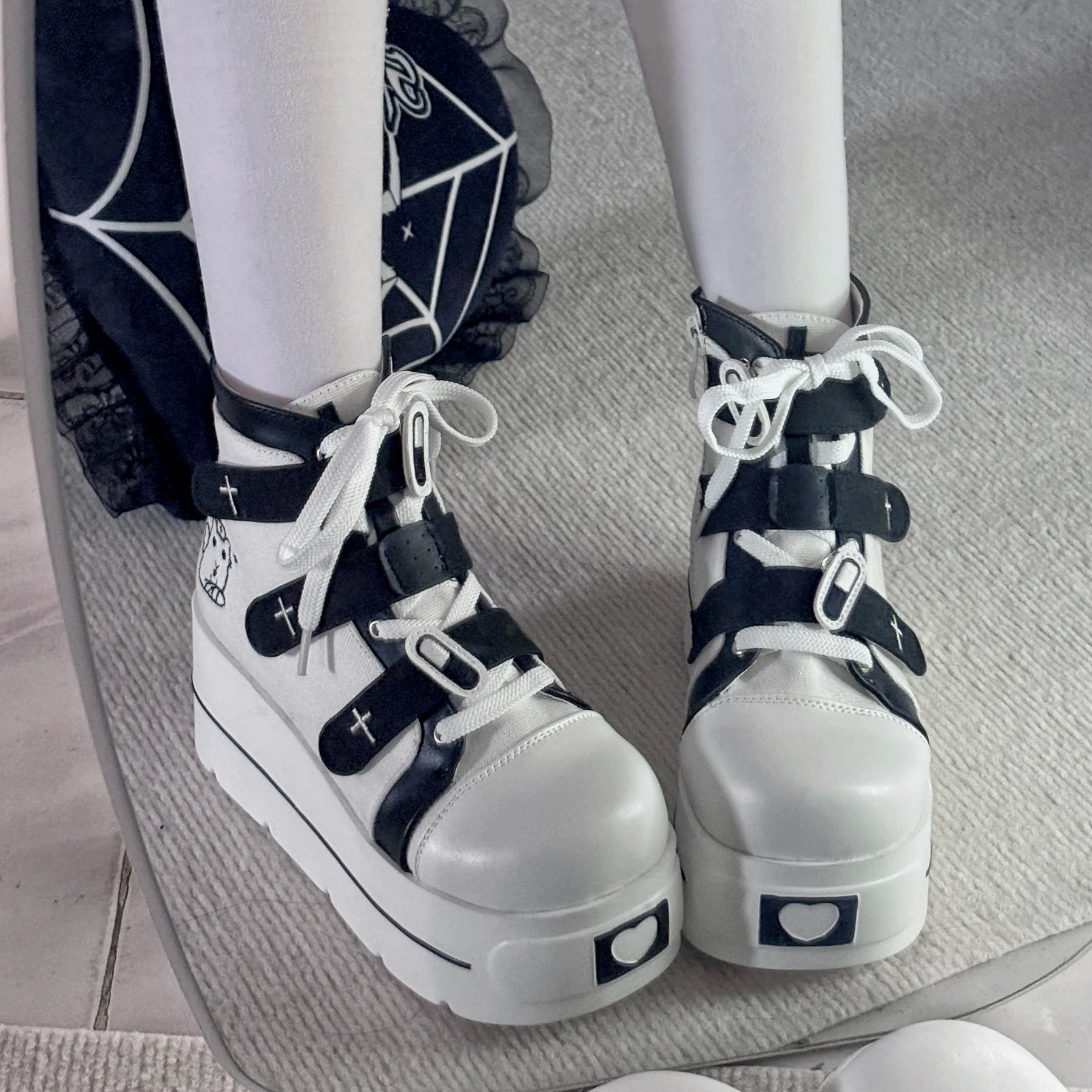Platformy Punk Rock białe z krzyżykami i agrafkami