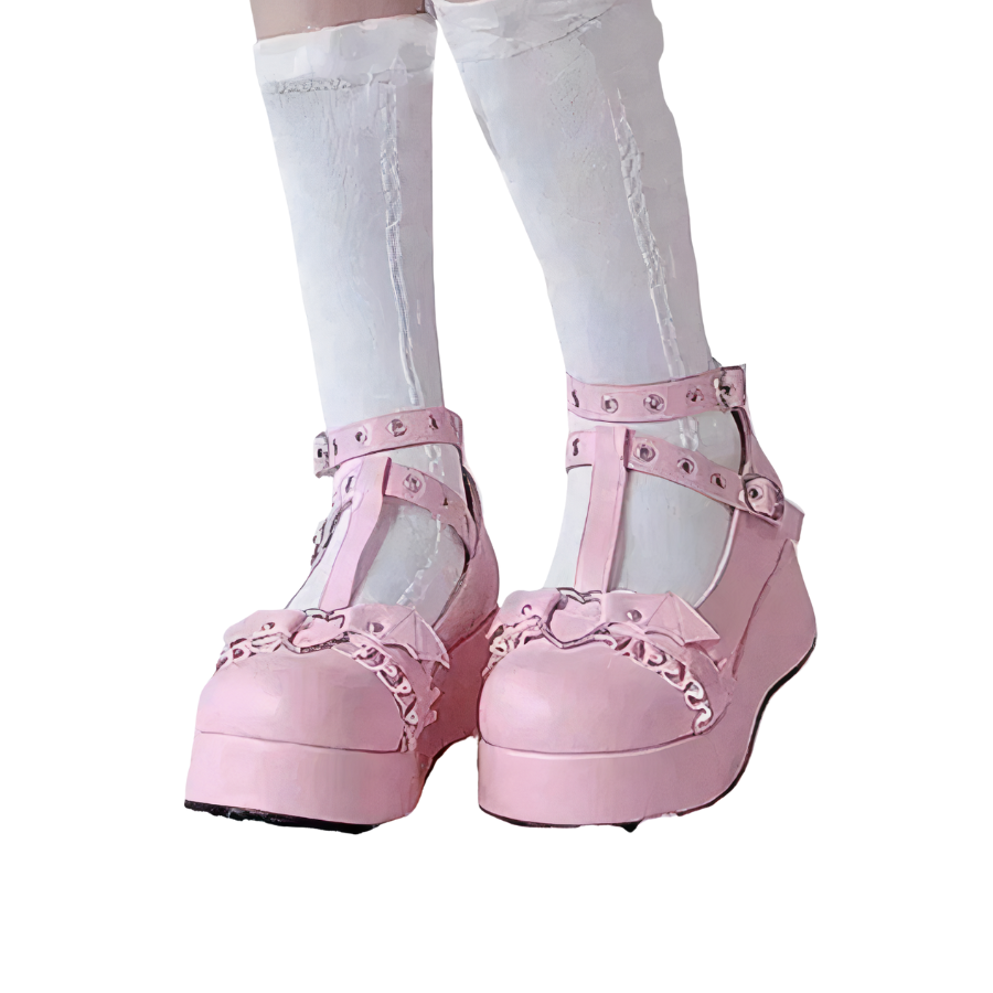 Scarpe Rosa con Borchie e Cinturini su Zeppa Jirai Kei