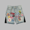 Shorts di Jeans Grigi Rock con Toppe Colorate e Catena