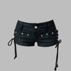 Shorts Gotici con Lacci - Pantaloncini Neri con Teschi