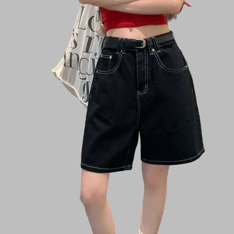 Shorts Gotici Neri Donna Cuciture a Contrasto Grunge Oversize
