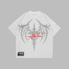 T-shirt grigio stile metal con borchie e scritta Attention