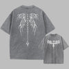 T-Shirt Grigio Vintage Metal con Ali d'Angelo Grunge