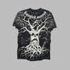 T-shirt khaki punk metal con scheletro di pesce sul retro