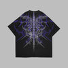 T-shirt oversize Black Metal con ornamento viola sul retro