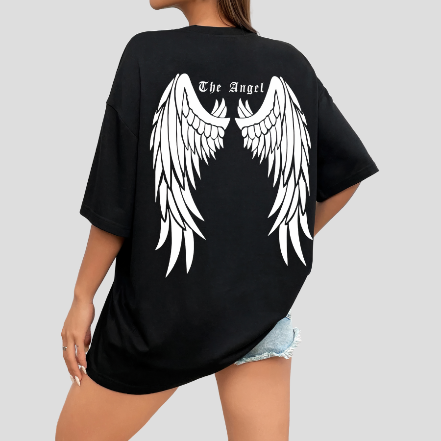 T-shirt oversize nero con ali bianche punk Vedi opzioni