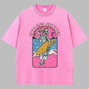 T-shirt Oversize Rosa con Scheletro Surfer Rock