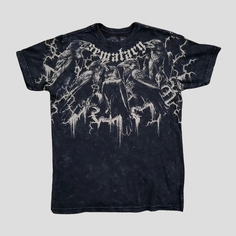 T-shirt Punk Metal con Corvi e Scritta Nero