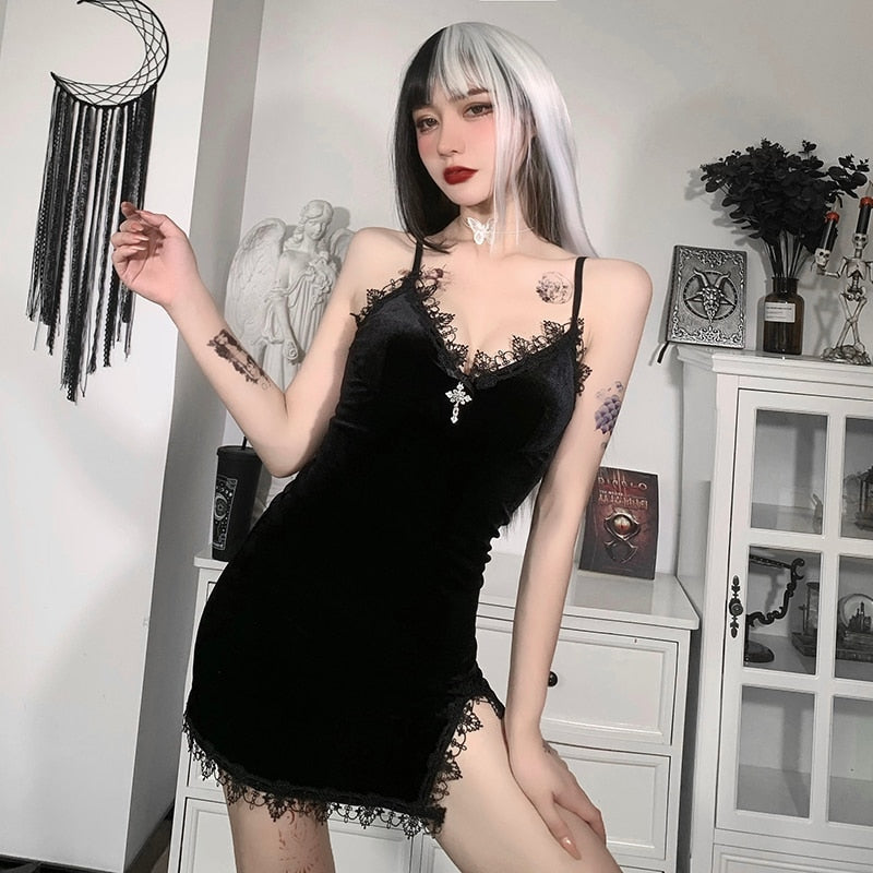 • Decorazioni: pizzi neri che evidenziano l'abito, croce metallica