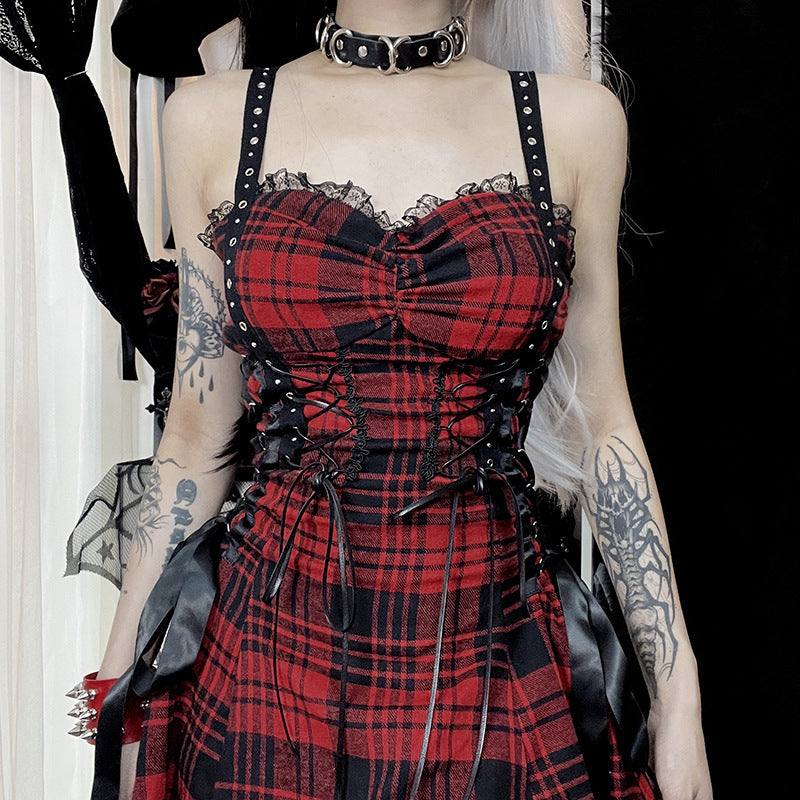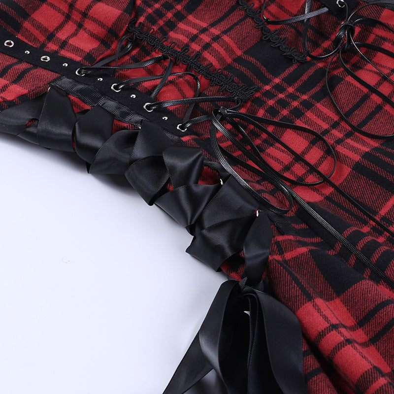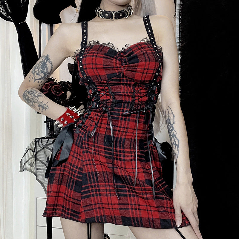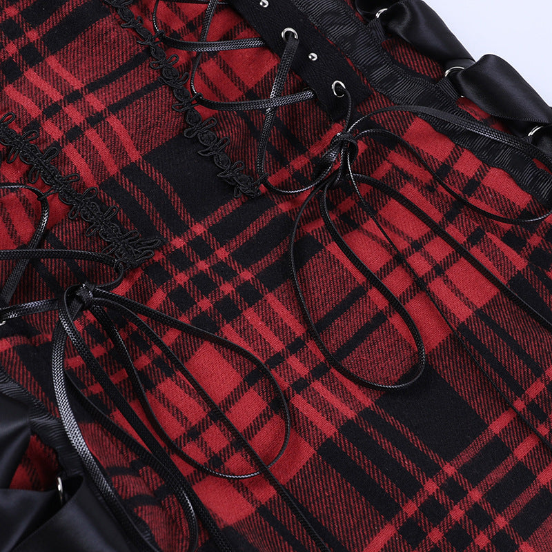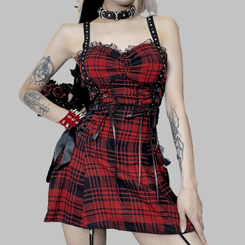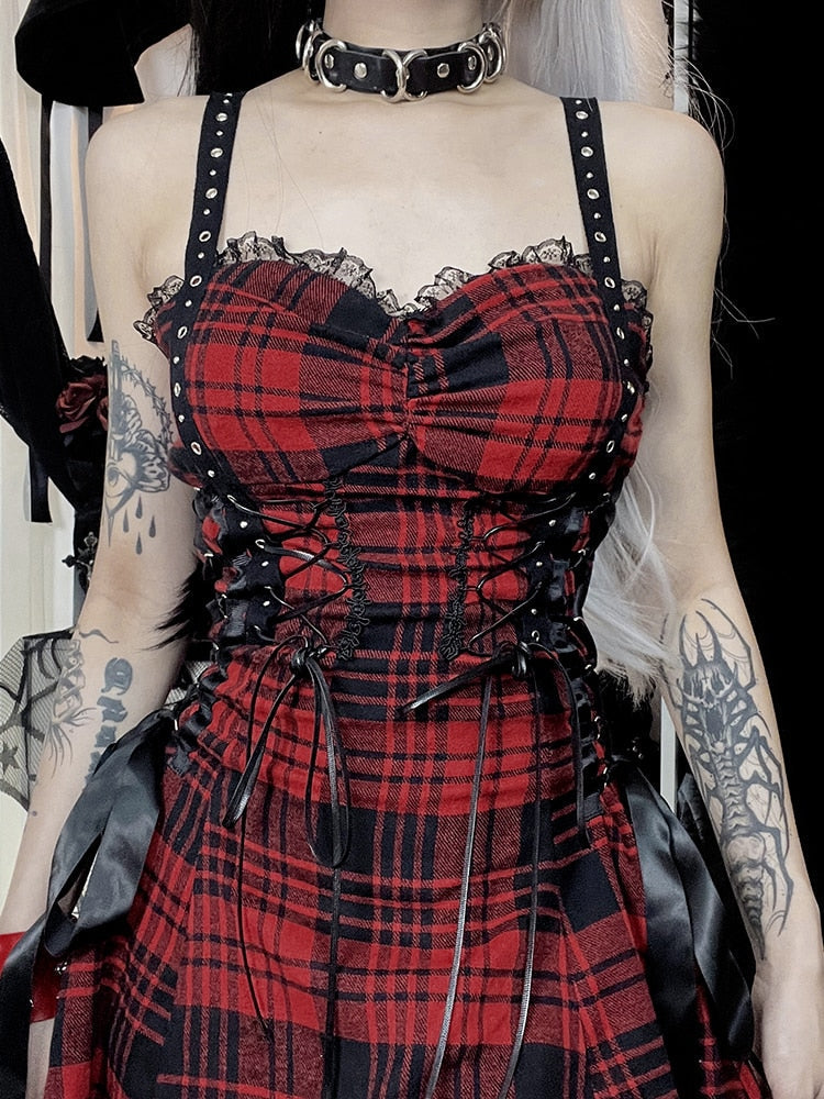 Vestito Punk a Quadri Scozzesi Rosso